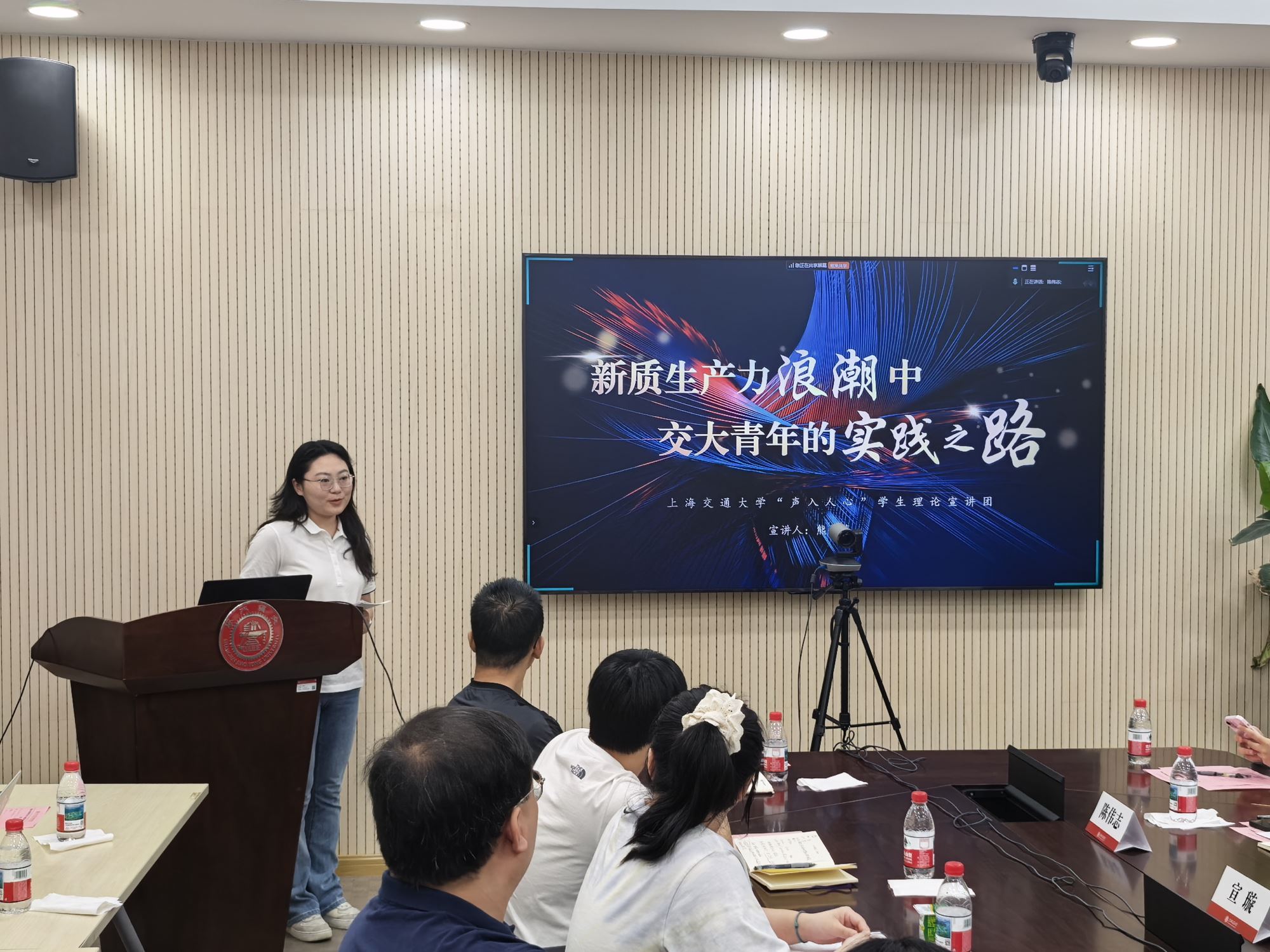 熊倩蓝作题为“新质生产力浪潮中交大青年的实践之路”的理论宣讲。她结合丰富的案例与数据,阐述了新质生产力的内涵与意义,分享了交大青年在科研创新、社会实践等领域的生动实践,激励同学们在新时代浪潮中勇担使命,为推动新质生产力发展贡献青春力量。