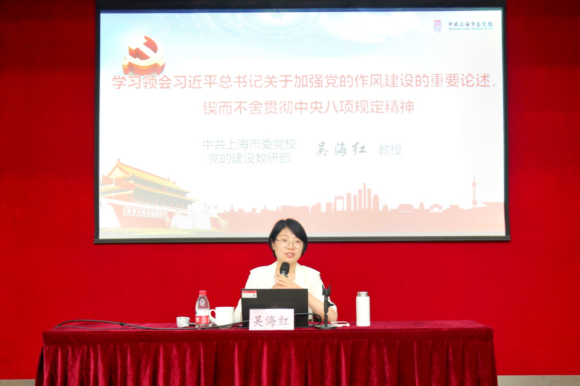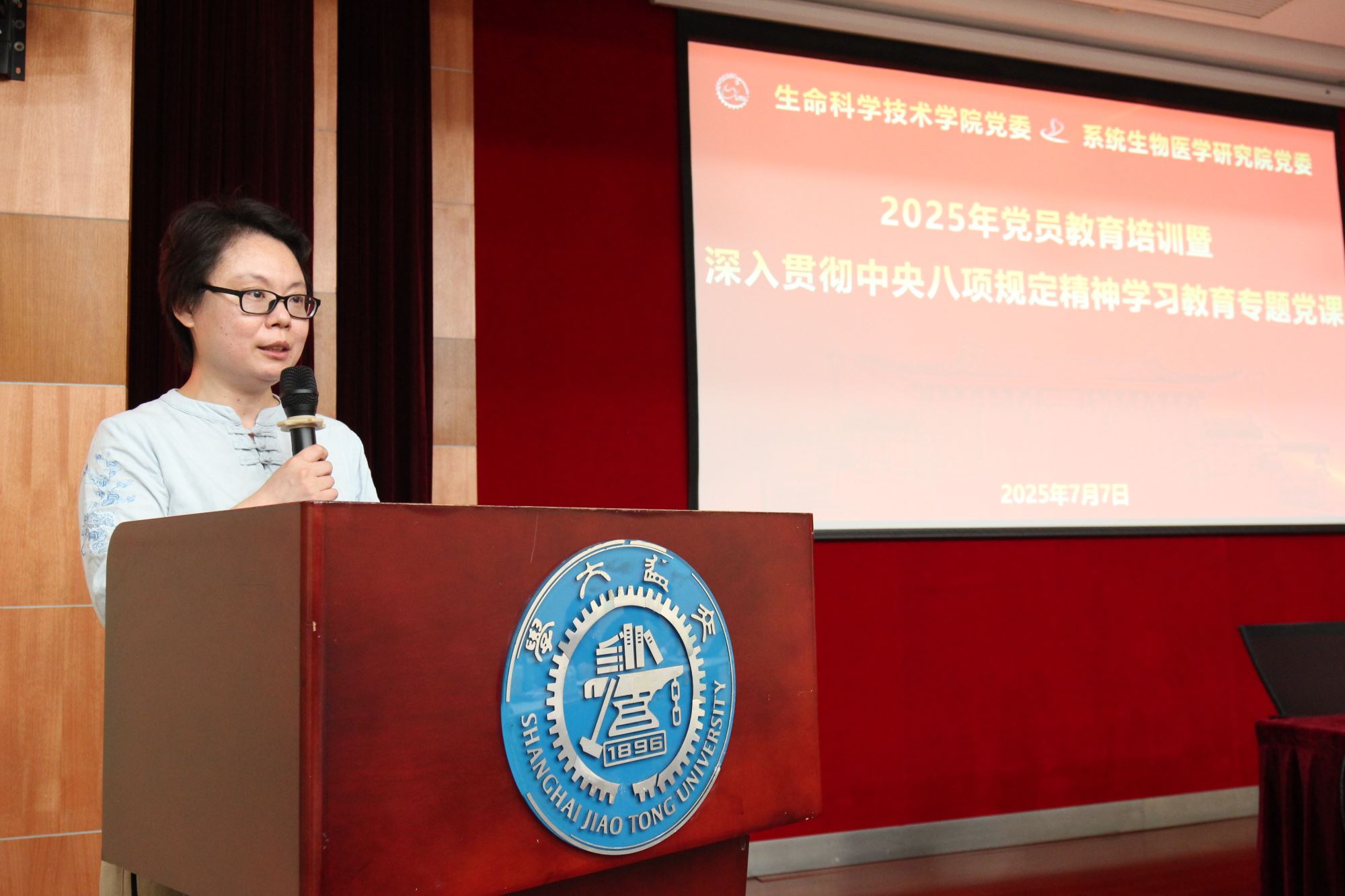 2025年7月7日,六合彩下期预测 联合系统生物医学研究院党员教育培训暨深入贯彻中央八项规定精神学习教育专题党课,邀请上海市委党校党的建设教研部教授吴海红老师做专题辅导报告。两个单位党政领导班子、党委委员、师生党支部书记、师生党员近200人参加学习。活动由六合彩下期预测 党委副书记王鑫主持。