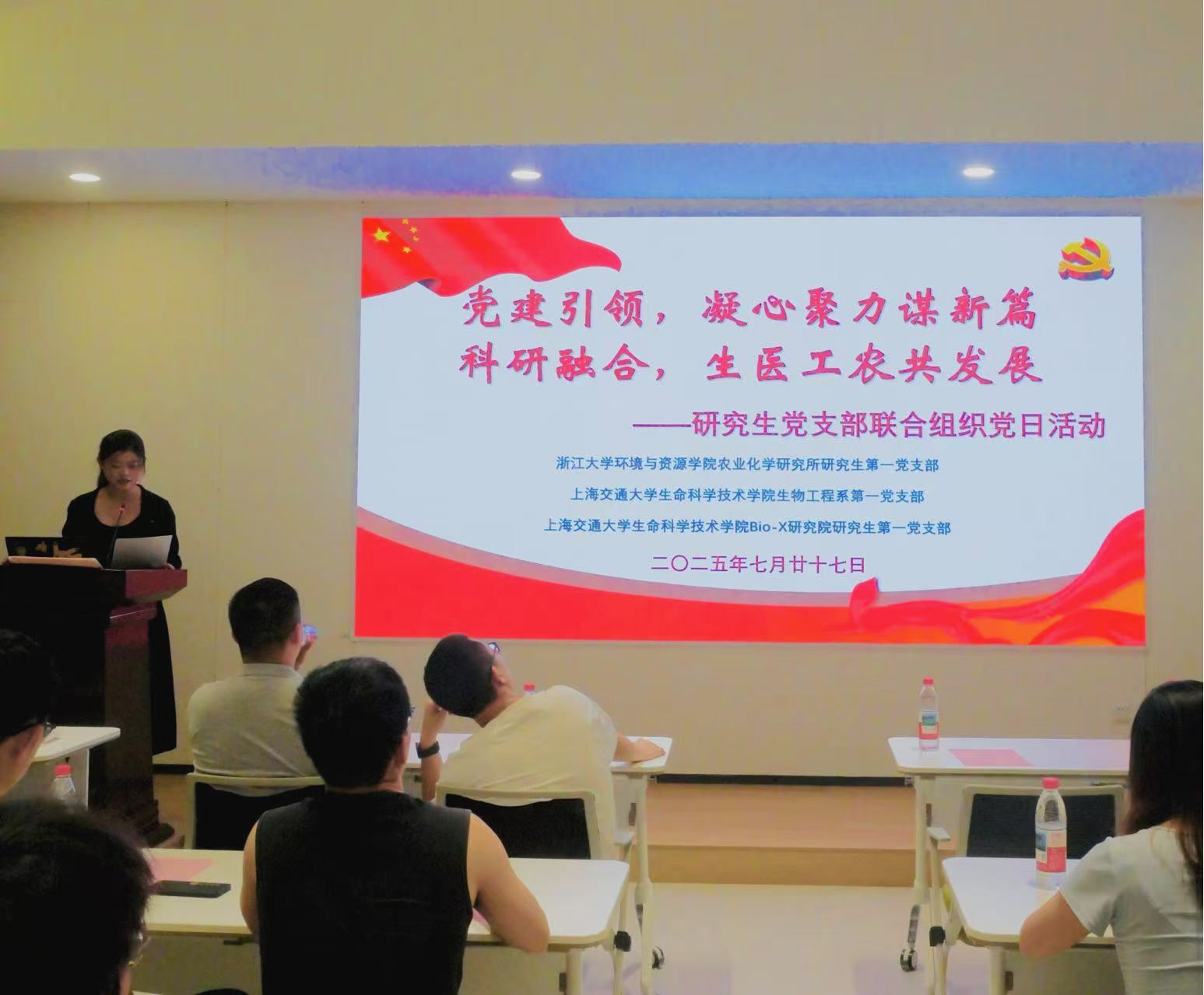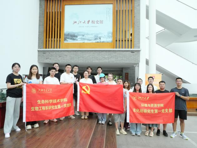 2025年7月27日,六合彩下期预测 生物工程系研究生第一党支部、Bio-X研究院研究生第一党支部与浙江大学环境与资源学院农业化学研究所研究生第一党支部联合举行主题为“党建引领,凝心聚力谋新篇;科研融合,生医工农共发展”的联合党日活动。活动通过党建交流、科研分享、校史研学、文化浸润等环节,探索党建与科研深度融合的新路径。