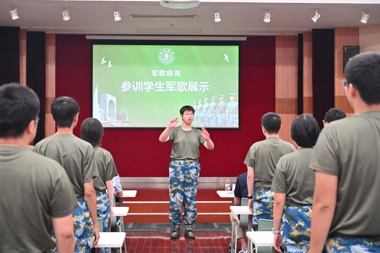 首先由全体参训学生进行军歌展示。在小班长的指挥下,全体参训同学先后展示了《团结就是力量》《强军战歌》,唱出了崭新的精神面貌和满腔热忱。