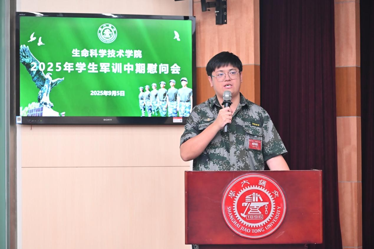 陈伟志做参训情况汇报。学院2025年共有68名学生参训(含致远荣誉计划18人)。生科2501、生科2502、生科2504班中共有男生35人,女生15人参训,分别编入了二营的十九连和二十连。学院全体参训同学在军训前半段中刻苦开展训练、认真参加活动,严格落实“军政双训”要求,为班级、营连和学院都争取了荣誉,取得了丰硕的战果,彰显了新生科人的青春力量!