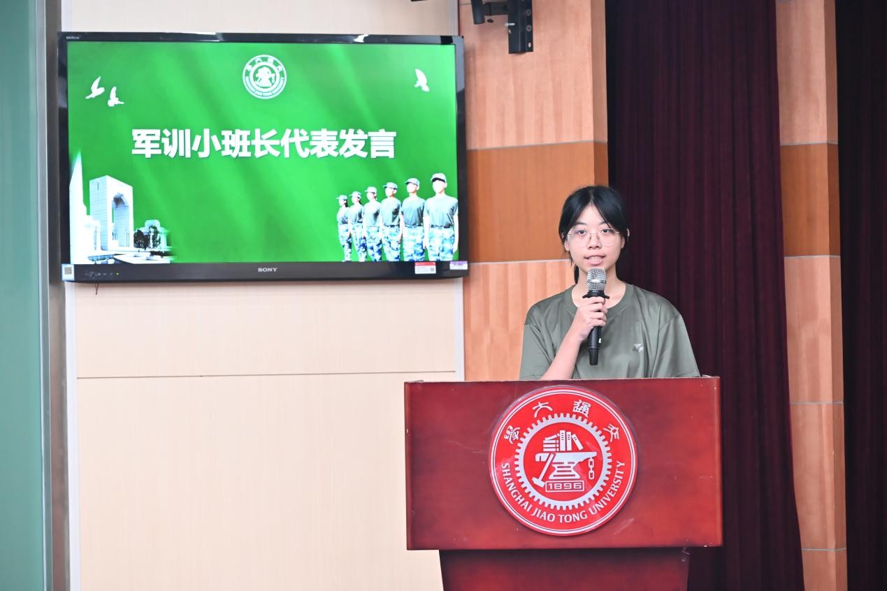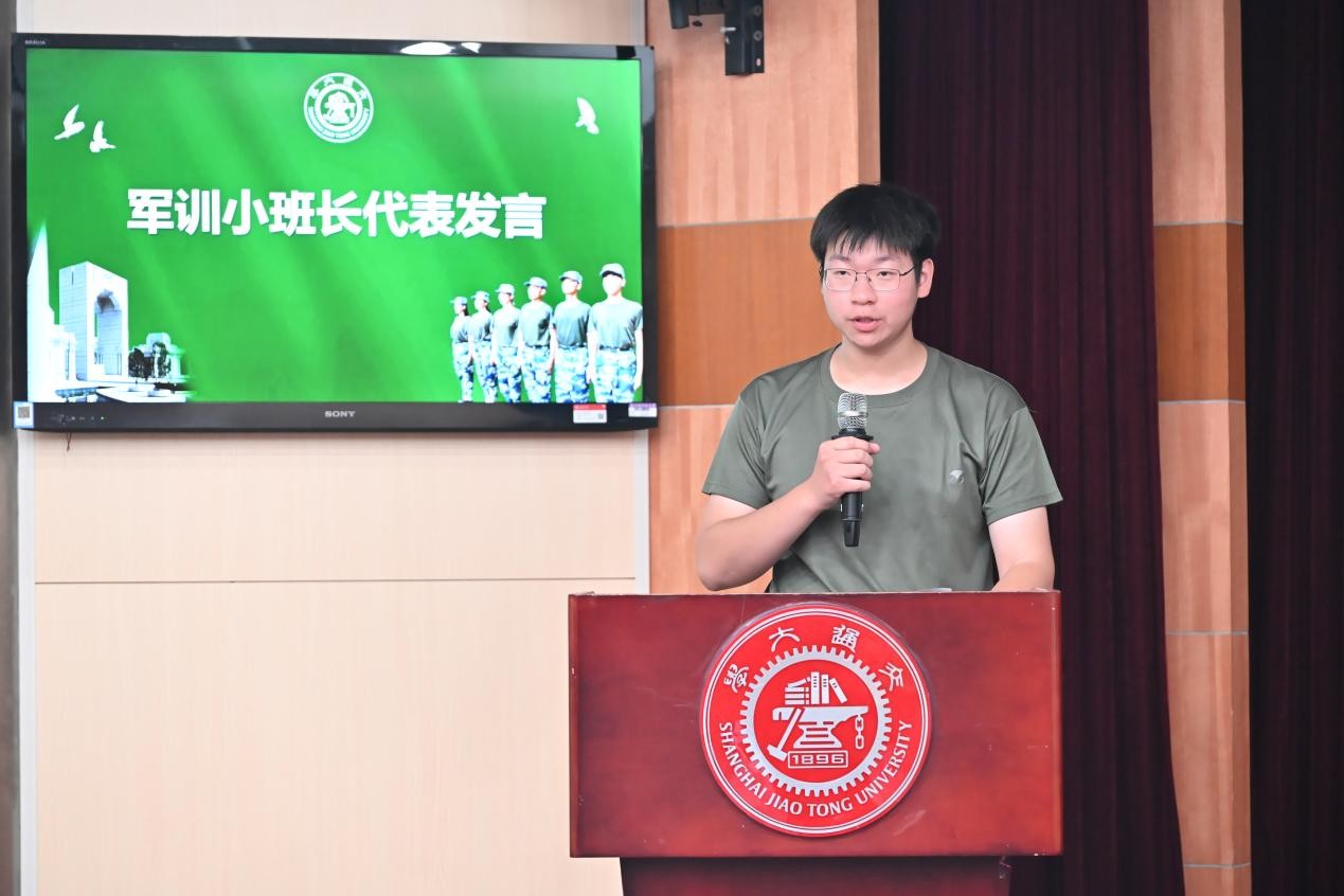 军训小班长代表发言。二营十九连小班长汪子栋、二营二十连小班长涂书玥先后回顾了自己在参训期间的经历和体会,并对全体参训教官和教师表示由衷感谢,承诺将在接下来的训练中继续保持高昂的斗志,发扬艰苦奋斗的精神,认真对待每一个动作,走好每一个步伐,向敬爱的老师、教官和学校,也向自己,交上一份无愧于青春、无愧于交大人身份的完美答卷。