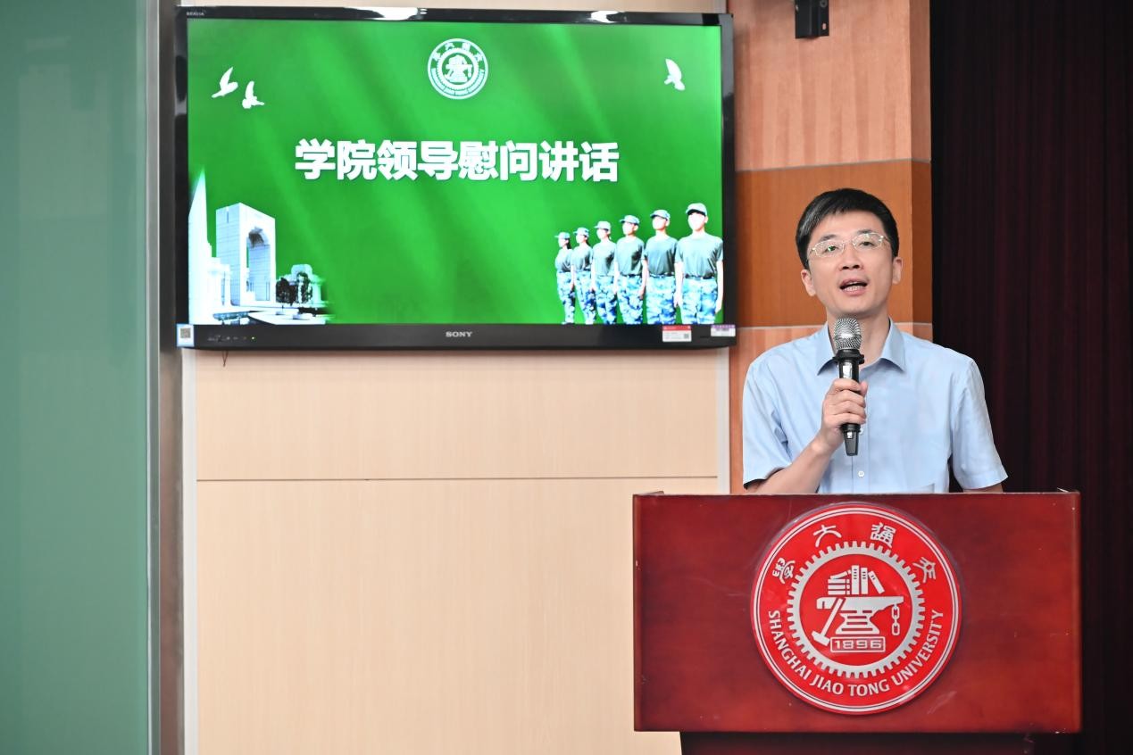 冒巍巍致慰问辞。他代表学院对全体新生的到来表示热烈欢迎,向全体参训同学致以诚挚的问候,向全体参训教师表达衷心的感谢。他肯定了同学们在前半程军训期间付出的努力和收获的成绩,并结合九三盛大阅兵以及自身体会对同学提出了期望,希望同学们在磨练钢铁意志的同时,发扬团结协作的精神,涵养浓厚的家国情怀,自觉与党和国家同向同行,做让党和人民放心的强国一代。