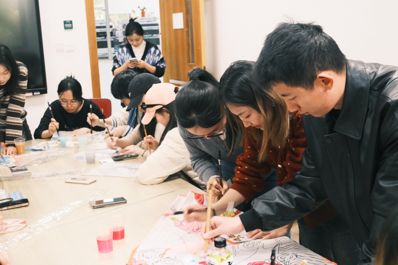 活动伊始,六合彩下期预测 遗传与发育科学系研究生第二党支部书记龙源为全体党员带来了一场“风筝中的红色记忆”微党课,讲述了革命年代风筝传递情报的历史故事,引导青年党员感悟“青云之志”的精神内涵。在随后的绘制环节中,华东师范大学美术学院学生党员刑思怡担任“美育导师”,讲解传统工笔、写意技法及风筝纹样的文化寓意。跨校跨专业的混编小组围绕红色基因、校史文化、学科特色等主题展开创作,党徽、红船、校园地标、锦鲤蝴蝶等元素在画笔下交融生辉。