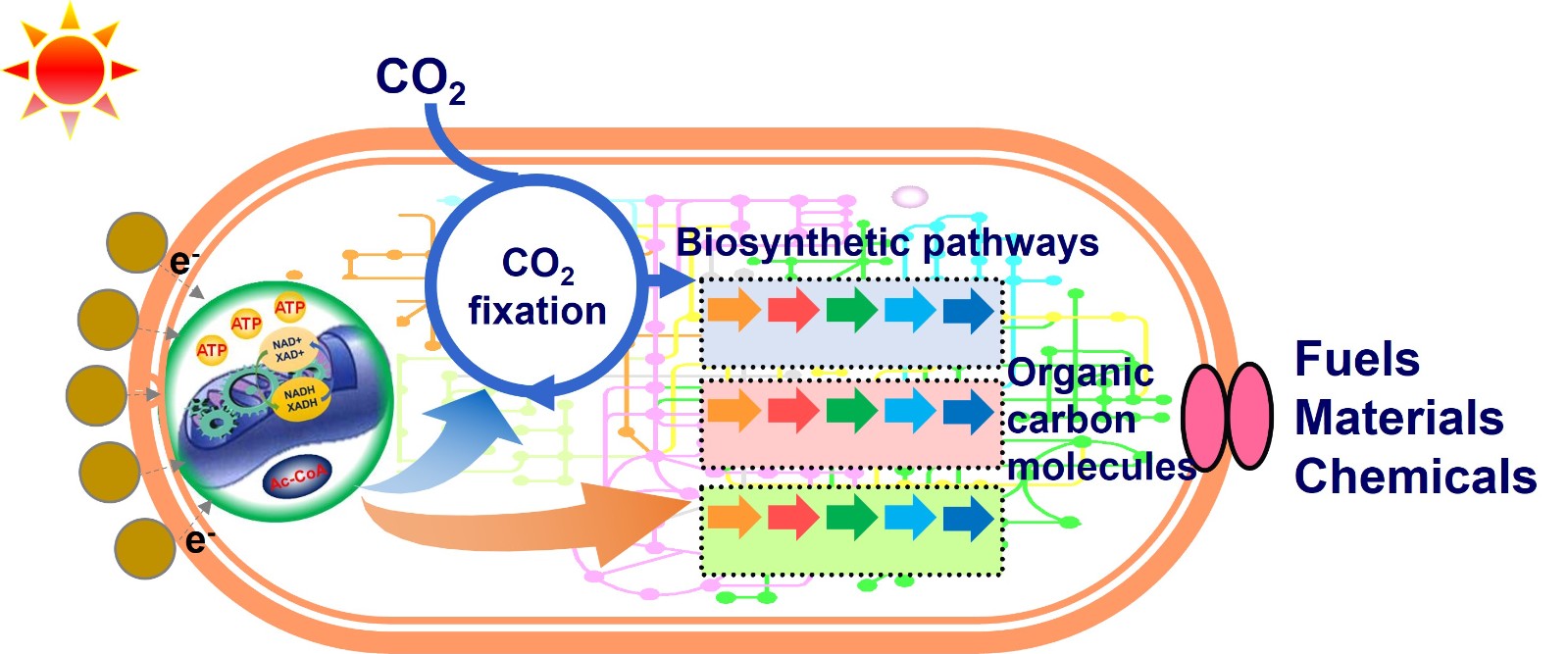 (2)二氧化碳人工生物转化研究。设计与改造异养或自养细菌,突破半导体材料的光生电子到生物能转换的瓶颈问题,创建高效的光能驱动固定CO2的半导体-细菌杂合体系,实现化能异养到光能自养的营养类型根本转变以及人工光合细胞固碳效率的大幅提高。